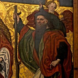 Die Innenseite zeigt auf trefflich erhaltenem graviertem Kreidegoldgrund den Christophorus (Christusträger). Die Malerei weist auf die Ulmer Schule und erinnert an die Gemälde des Blaubeurer Hochaltars.
