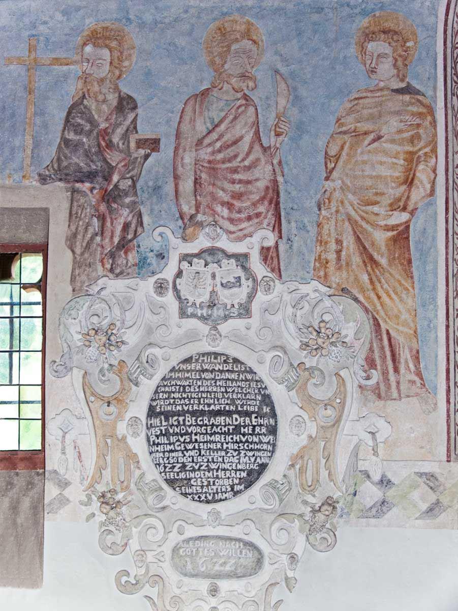 Epitaph, darüber Apostelfiguren