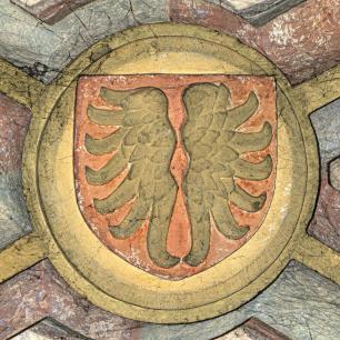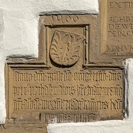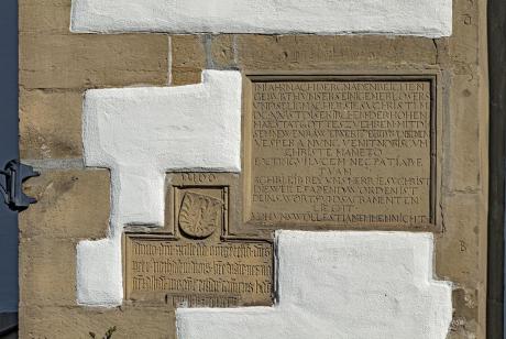 Der linke trägt die Jahreszahl 1500 und das Wappen der Nothaft.