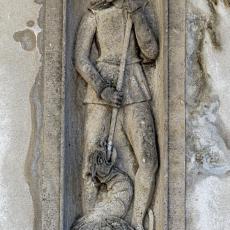 Hl. Georg und Memento an der Friedhofsmauer auf dem Weg zum Pfarrhaus: Apfelbaum 2017...