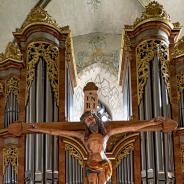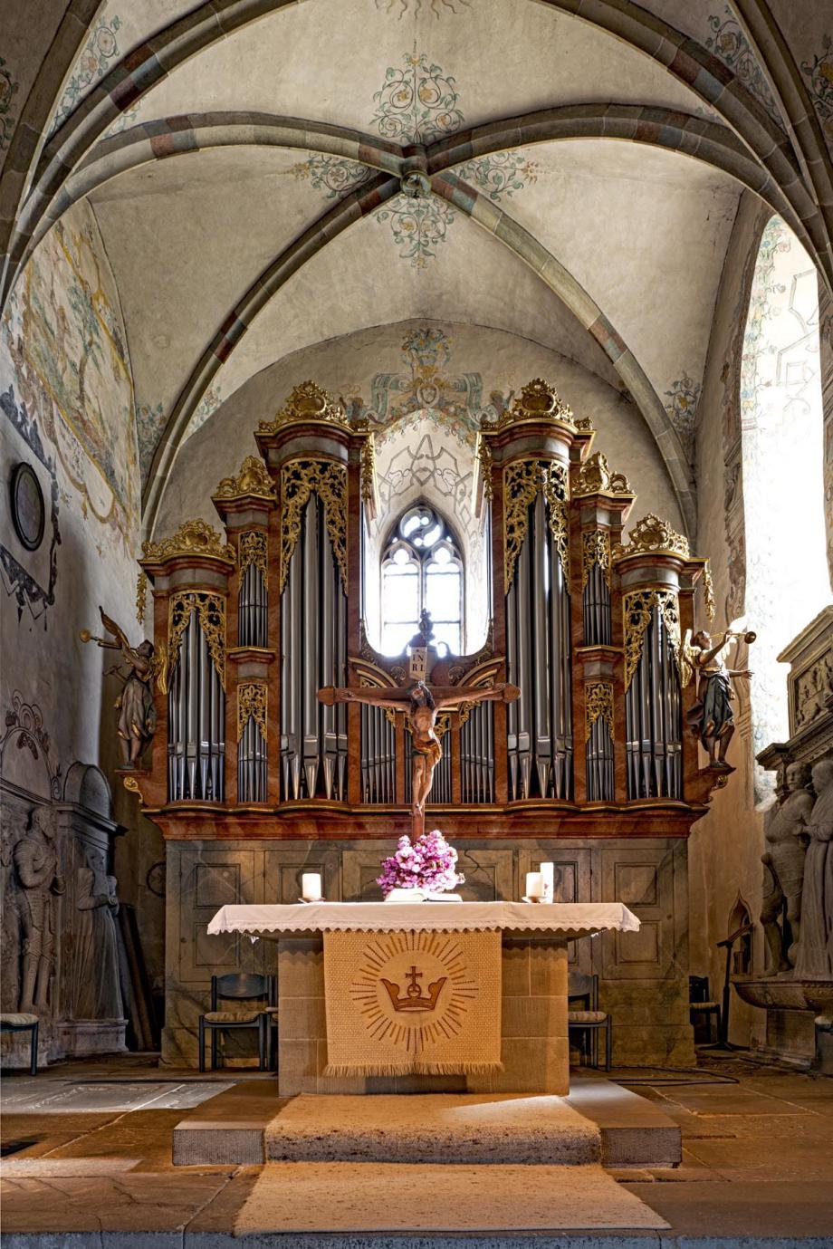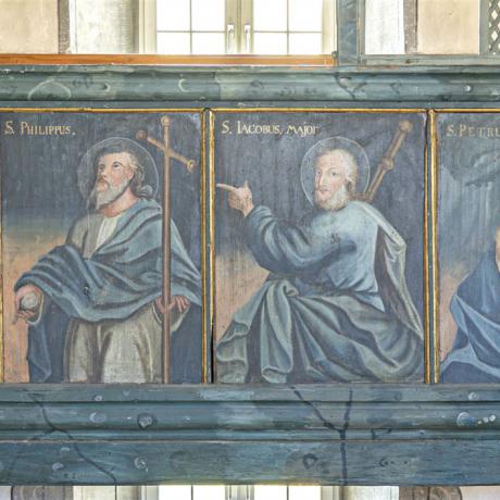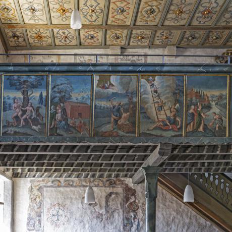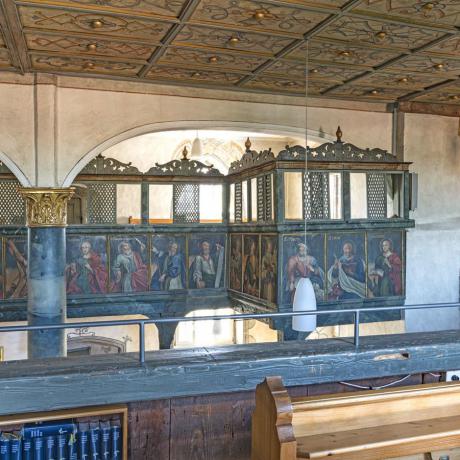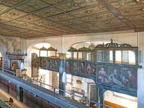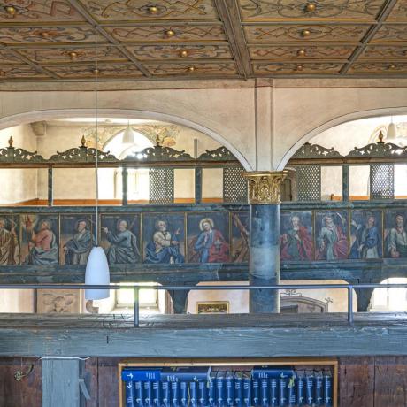 5.35 - 5.37 · Blick zur Westempore, Auferstehungsbild darunter (Jörg Herzog 1596)