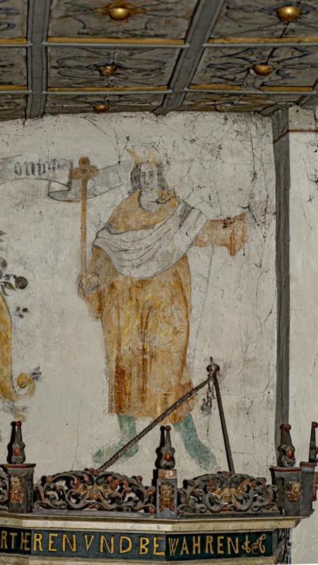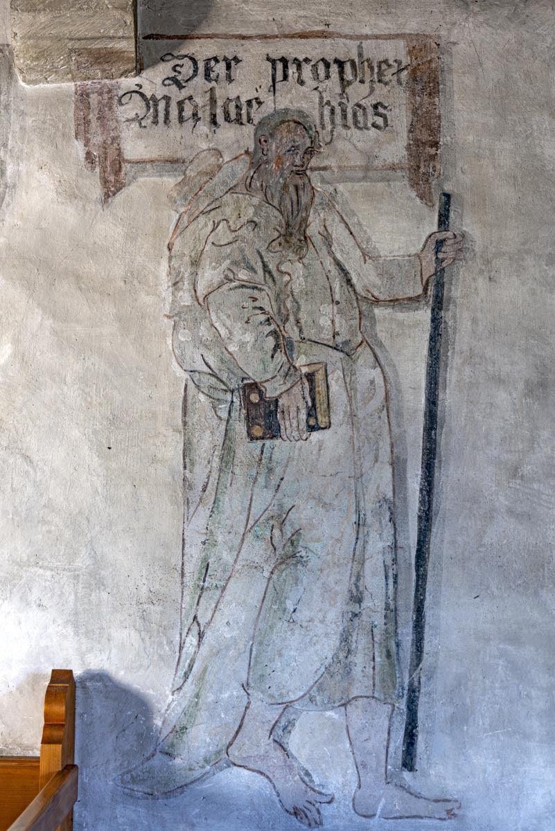 Als man 1620 den rechteckigen Grundriß des Schiffes durch ein Querschiff nach Süden für die Errichtung der Junker-Bor-Kirche erweiterte, fiel die bisherige Südwand in ihrer ganzen Länge bis zum westlichen Südeingang weg und damit waren auch die elf Figuren der Propheten von Jesaja bis Nahum dahin. Erfreulicherweise sind die letzten fünf Gestalten der alttestamentlichen Schriftpropheten erhalten. (Otto Majer)