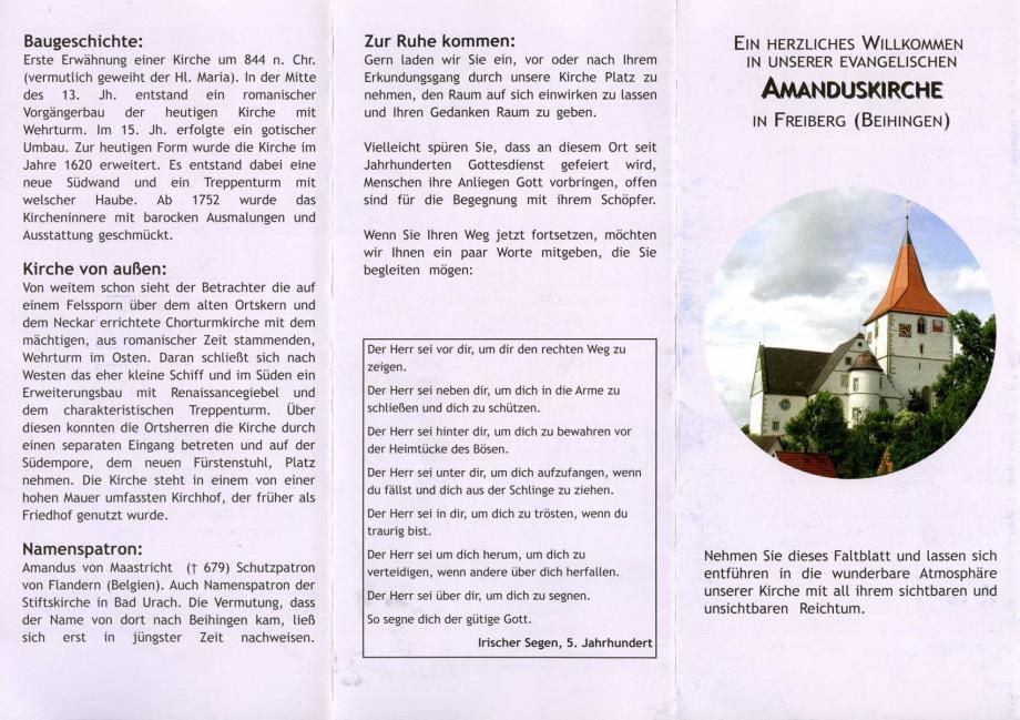 Nachfolgend die Vorderseite eines Faltblattes, das in der Kirche ausliegt. Rückseite s.u. "Innen"
