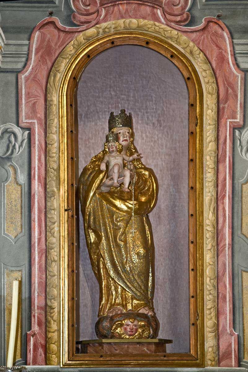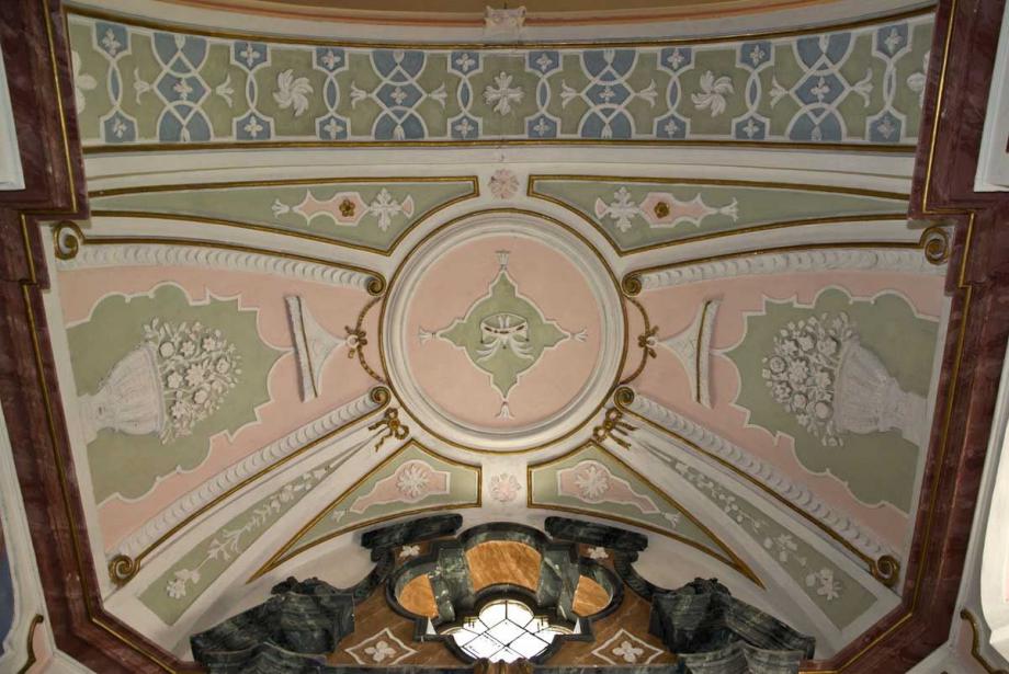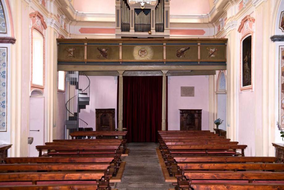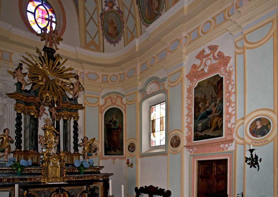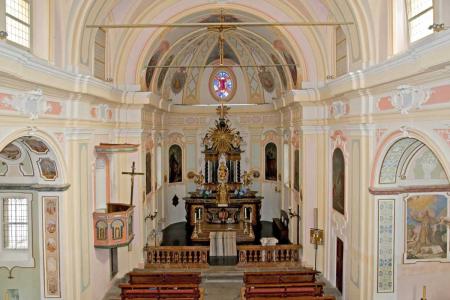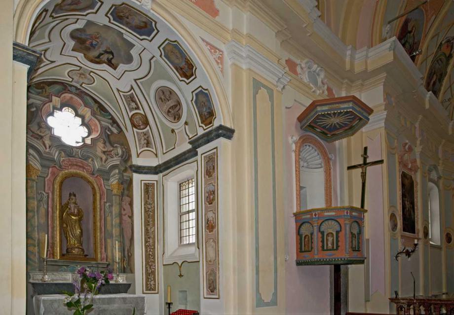 Den Altar der Kapelle schmückt ein 1732 datiertes Scagliola-Frontale aus Stuckmarmor von Francesco Solari. Das Äussere der Kirche wurde 2004 restauriert.
