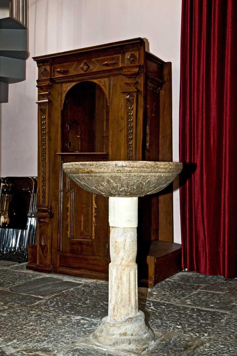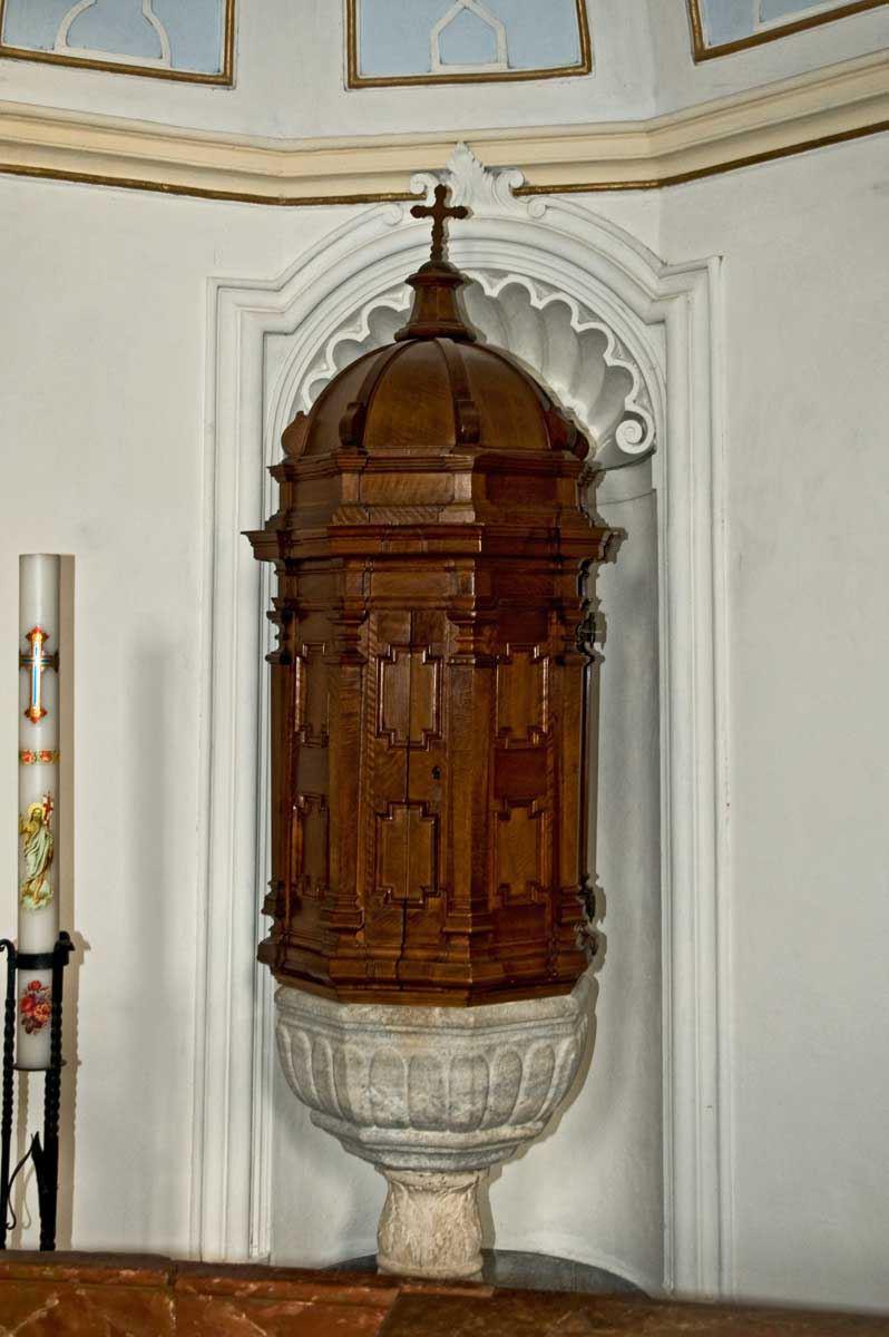 Weihwasserbecken / Beichtstuhl (Westwand)