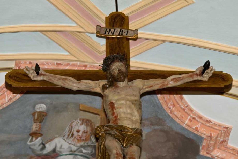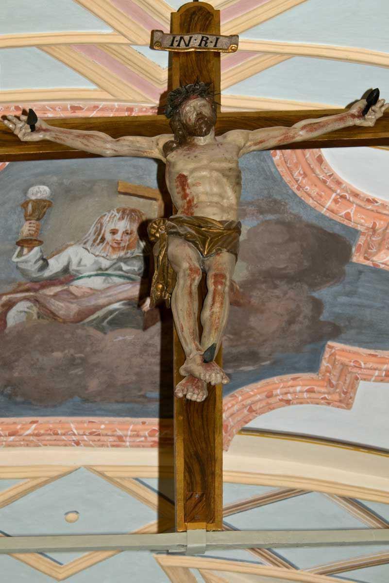 - Innen (8) · Schiff rechts Katharinenkapelle · Chorbogen Crucifix · Empore