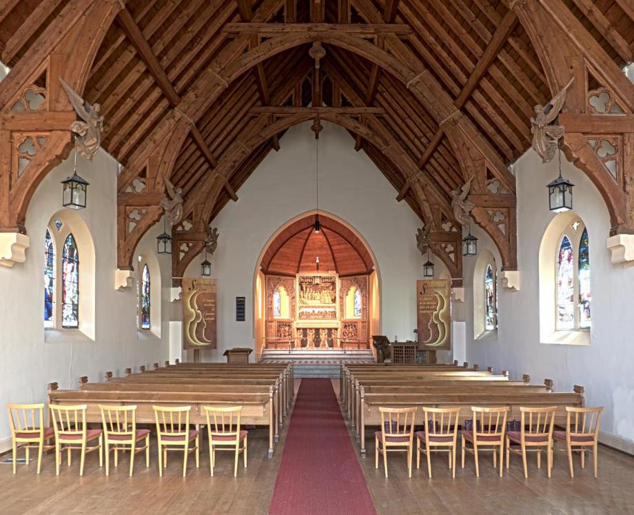 33 bzw. 38 Fenster (wenn man im Vorraum alle einzeln zählt) schmücken diese Kirche, die Michael und allen Engeln geweiht ist - auf den Fenstern in verschiedenen Situationen dargestellt. Geschuldet der Entstehungsgeschichte sind die Legenden zu den Fenstern in englischer Sprache verfasst.