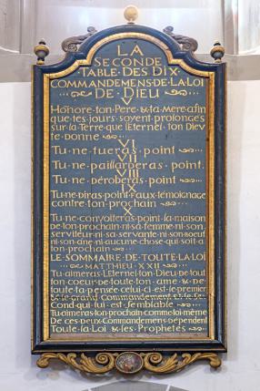 Die Tafeln, welche die Zehn Gebote und das Göttliche Gesetz darstellen, wurden vom Notablen Martin Couvreu im Jahre 1725 geschenkt.