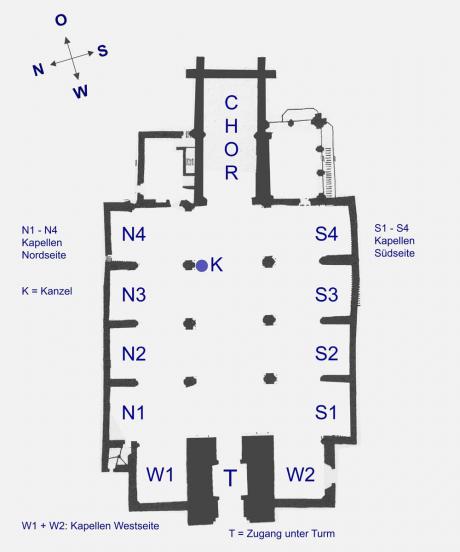 N1 - N4 - Kapellen an der Nordwand | S1 - S4 - Kapellen an der Südwand