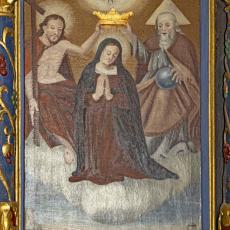 "In einer Nische der Nordwand ein hochgotisches Vesperbild aus Holz, H. 110 cm, hinten ausgehöhlt und mit Deckbrett verschlossen. Zwei der Finger Christi fehlen. Der Umriss umfliesst die Figur wie eine sich neigende Welle; um 1360—1370. Neu bemalt, Sternchen und Schwerter spätere Zutaten. Das Bildwerk stand vor der Reformation vermutlich in Duvin(Dies wohl der wahre Kern der Überlieferung, dass die von den Duvinern in das Tobel geworfene Figur von den Peidnern bei der Einmündung des Baches in den Glenner herausgefischt worden sei.)"