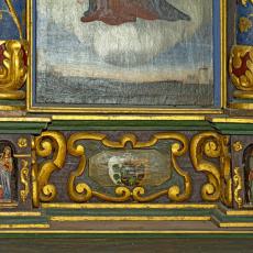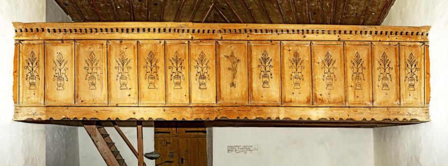 Heute wieder in Sogn Glieci in der Nische hoch über dem Schiff auf der linken Seite aufgestellt - hinter Panzerglas.