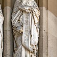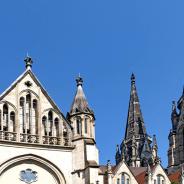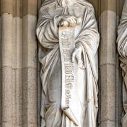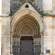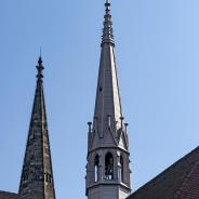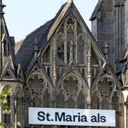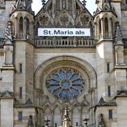 Schaut man heute auf die Kirche mit ihren beiden prominenten Türmen, so sticht ein Plakat ins Auge, das seit 2017 über dem Rosengeschoß angebracht ist: "St. Maria als"