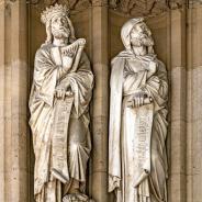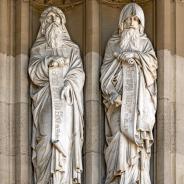 Der Prophet Micha, rechts der Prophet Jesaja - seine Berufungsvision mit der Reinigung des Mundes durch einen glühenden Stein (Jes 6, 6) | |