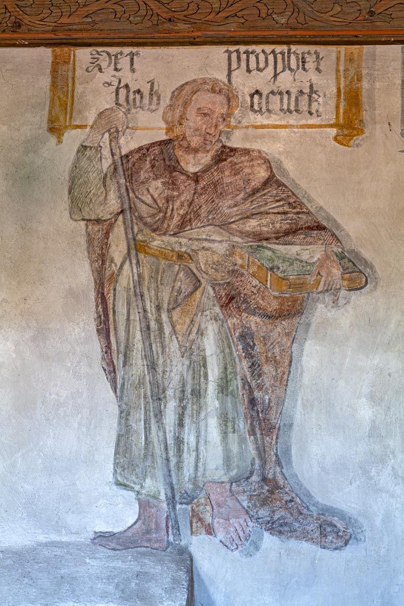 Als man 1620 den rechteckigen Grundriß des Schiffes durch ein Querschiff nach Süden für die Errichtung der Junker-Bor-Kirche erweiterte, fiel die bisherige Südwand in ihrer ganzen Länge bis zum westlichen Südeingang weg und damit waren auch die elf Figuren der Propheten von Jesaja bis Nahum dahin. Erfreulicherweise sind die letzten fünf Gestalten der alttestamentlichen Schriftpropheten erhalten. (Otto Majer)