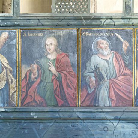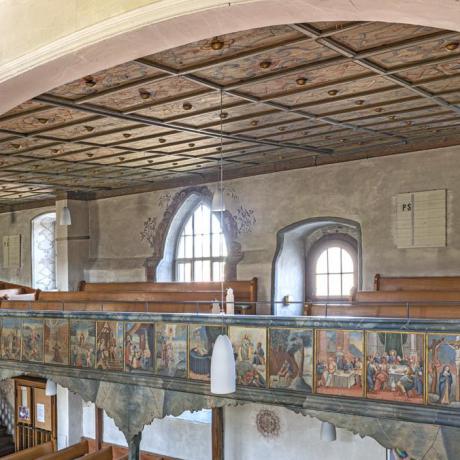 5.35 - 5.37 · Blick zur Westempore, Auferstehungsbild darunter (Jörg Herzog 1596)