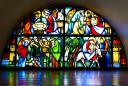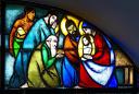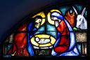 Was das Fenster darstellen will, ist leicht zu erkennen. In vier Szenen wird die Weihnachtsgeschichte dargestellt: Die Geburt Jesu — Maria und Josef beten das Kindlein an, und Ochs und Esel schauen zu — die drei Weisen aus dem Morgenland bringen dem Kind ihre Gaben — zwei Bilder voll großer Freude und tiefen Glücks. Aber dabei bleibt es nicht: Der Kindermord von Bethlehem zeigt die klagenden Mütter mit ihren toten Kindern und die Soldaten mit ihren spitzen Schwertern — und tief betrübt machen sich Maria und Josef mit dem Kind auf den Weg zur Flucht nach Ägypten.