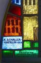 Die Signaturen (Käte Schaller-Härlin / Werkstatt Saile) und der Stifter in den Außenbögen unten links und rechts sind wahrscheinlich 1956ff hinzugefügt worden - auf dem Bild 1921 ist davon nichts zu erkennen, dafür rechts unten die Jahreszahl "30.XII.1910" - Verweis auf den Stifter
