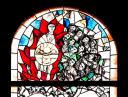 Jesus lehrt uns beten: „Erlöse uns von dem Bösen". Im Fensterbild wird er gezeigt, wie er Blinde heilt (Mk 8, 22-26).Er schenkt Erlösung vom Bösen. Die Krankensalbung soll Leben und Heil schenken für die Seele und den Leib.