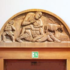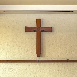 Ulrich Henn (1925 - 2014): Holz-Kruzifix in der Kapelle, 6 Biblische Gestalten (Pfeilerfiguren), Glockenzier der Großen Glocke von 1956