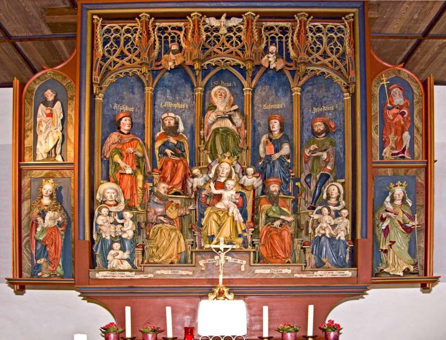 In den Evangelien ist des Öfteren davon die Rede, dass Jesus Geschwister hatte. So steht bei Mt 13,55 EU: „Ist er nicht des Zimmermanns Sohn? Heißt nicht seine Mutter Maria und seine Brüder Jakobus und Josef und Simon und Judas?“ Einige Personen der Heiligen Sippe sind biblisch festzumachen; andere, so auch die heilige Anna, kommen in den apokryphen Schriften oder in der damals weit verbreiteten Legenda aurea vor. Im katholischen Westen und im orthodoxen Osten hielt man an der unversehrten Jungfräulichkeit Mariens fest.