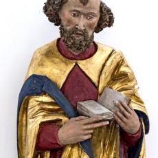 mit Bibel (Buch), einer der 4 Evangelisten. Sein Evangelistensymbol ist der Engel (hier nicht zu sehen). Verfasser des 1. Evangeliums der Bibel (Neues Testament). Von Beruf war er Zöllner.