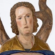 Märtyrerin Rom Ende des 3.Jh., hält im Arm einen Pfeil, mit dem er beschossen wurde. Halbnackt am Baumstamm angebunden. Von Irene gesund gepflegt, später mit Keulen erschlagen und in die Cloaca Maxima von Rom geworfen. Schutzpatron gegen die Pest, gegen Ketzerei und Religionsfeinde, Beschützer des Soldatenstandes und der Schützen.