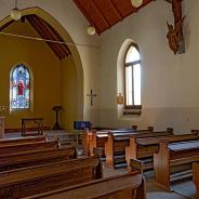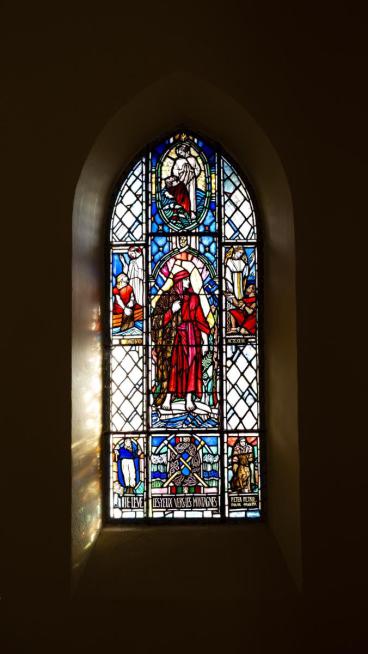 Das Glasfenster (gespendet von Frau Pétrie, einer anglikanischen Pfarrfrau) ist dem Heiligen Petrus gewidmet, der in vier verschiedenen Situationen dargestellt ist.