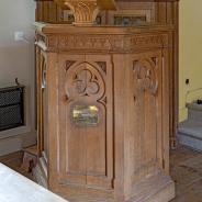 3.01 - 3.06: Kanzel aus Holz - Stiftung eines englischen Oberst im Jahr 1893. Widmungsplakette (3.04) an der Vorderseite: Zum liebevollen Gedenken an Elisabeth Baroness Ashtown, die hier zum letzten Mal dem Gottesdienst der Kirche auf Erden beigetreten ist und auf dem englischen Friedhof in Montreux ruht.