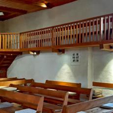 Die Orgel, die nach fünfzig Jahren Dienst erschöpft war und zu schwer-fällig war, um in der renovierten Kapelle zu bleiben, wurde 1972 dem Schweizerischen Orgelmuseum übergeben. Eine neue Orgel, die von der Orgelmanufaktur Lausanne nach Mass gebaut wurde, wurde auf der Galerie platziert und beherrscht den Haupteingang. Im Laufe der gleichen Restaurierung wird das kleine Fenster (14. Jahrhundert) der Südfassade mit einem von Jean Prahins entworfenen Glasfenster, der «Taube des Heiligen Geistes», geschmückt.