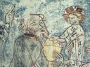 19 Begegnung von Maria und Elisabethhier sind die Ungeborenen durch fensterartige Öffnungen im Leibe der Frauen zu sehen, eine vielleicht allzu sinnfällige Darstellung des Wortes „habitaculum domini"