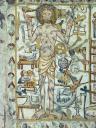 56 Jüngste Gericht (oben)in zwei Schichten zerlegt: oben bei Christus und den Fürbittern die aus den Gräbern sich erhebenden Seligen
