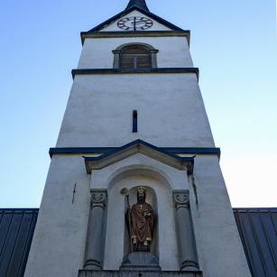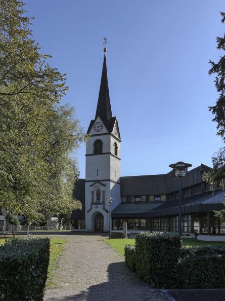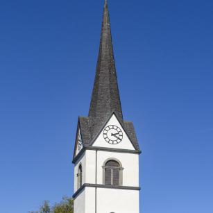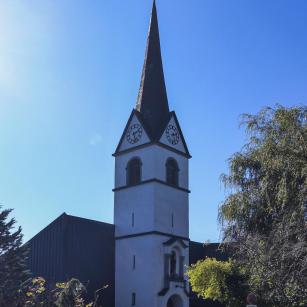 Den Kirchturm (aus der Mitte des 19. Jahrhunderts) sieht man schon von Weitem, wenn man zB auf dem Bodensee-Rundweg mit Fahrrad unterwegs ist und durch den schönsten Abschnitt fährt: Bregenz - Rheindelta - Gaißau/Rheineck - Rorschach. Hierbei kommt man auch vorbei am Kloster Mehrerau und der Kirche St. Sebastian in Hard.
