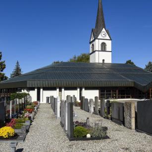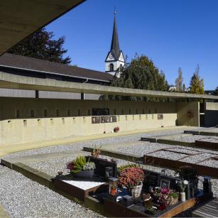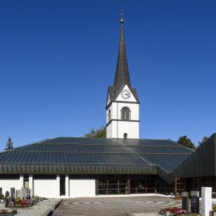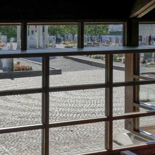Die Friedhofserweiterung im österreichischen Fußach zeigt, dass räumliche Konzentration nicht nur gut funktioniert, sondern auch so aussieht. Geplant wurde sie vom Architekten Reinhard Drexel aus Hohenems, der den im Jahr 2002 ausgeschriebenen Wettbewerb für sich hatte entscheiden können. Sein Konzept vereint die Friedhofserweiterung mit der Neugestaltung des Kirchplatzes im Zentrum der 4.000 Einwohner zählenden Gemeinde und schafft gleichzeitig Distanz zur umliegenden Wohnbebauung. Quelle: Baunetzwissen