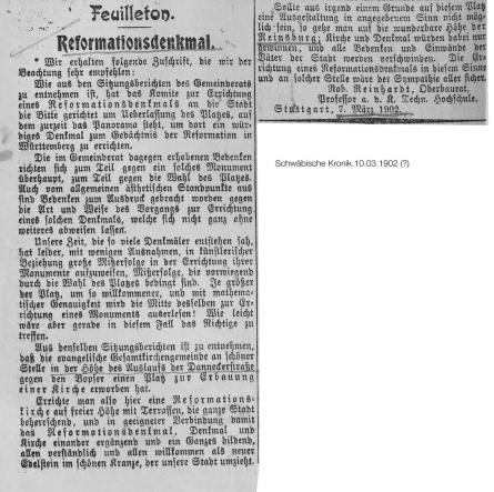 zur Errichtung eines Reformationsdenkmals in Stuttgart