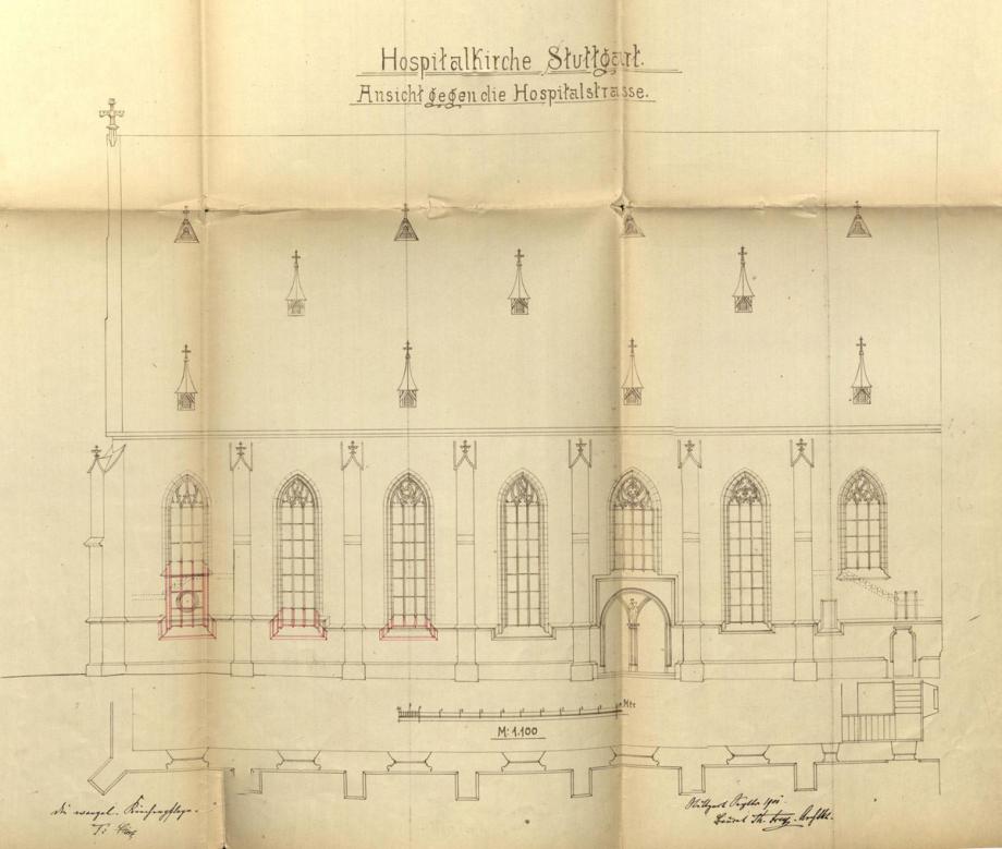 Plan Hospitalkirche Südwand 1906 - noch ohne Denkmal