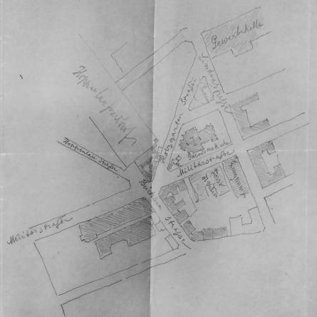 Erschwerend wirkt, daß nach dem beiliegenden geometr. Plans die Vorgärten im Besitz der Stadtgemeinde sind.