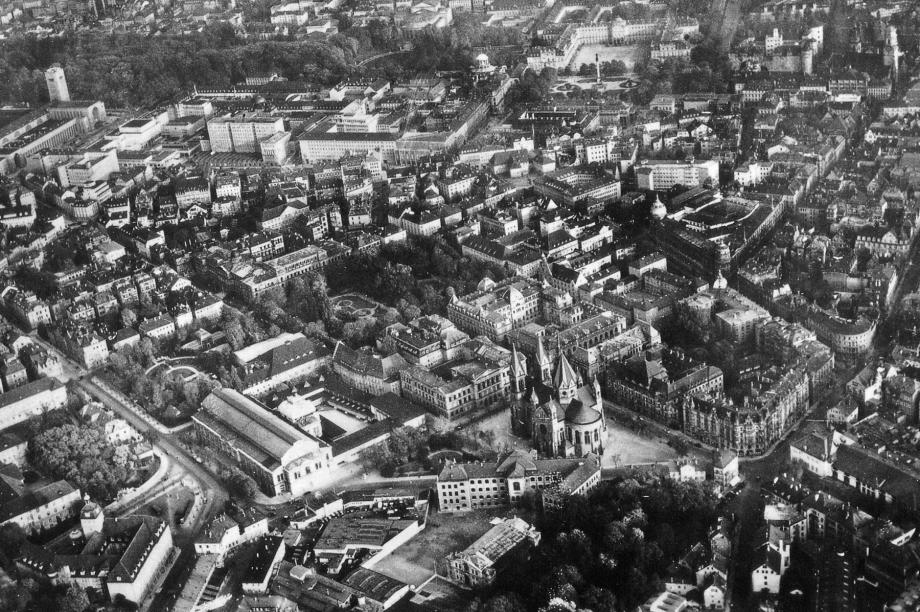 Da diese Kirche im 2. Weltkrieg zerstört und danach nicht wieder aufgebaut wurde, ebenso der Straßenplan sich gravierend verändert hat, so daß wir heute gar nicht mehr wissen, wovon damals die Rede war, nachfolgend die kleine Skizze (von Th. Fischer ?), in welcher man die Garnisonskirche und davor "Luther" erkennen kann, daneben ein Stadtplan von 1909 - Auszug etwa des links skizzierten Areals. Darunter ein Luftbild aus der Zeit vor der Zerstörung (Jahr leider nicht bekannt, aus Privatbesitz), auf dem das fragliche Areal gut erkennbar ist: links unten das Lindenmuseum, daneben die große Gewerbehalle, die Garnisonskirche in der Bildmitte, davor der Hoppenlaufriedhof, rechts die "alte" Liederhalle, oben links Hauptbahnhof (Bonatz), Mitte Neues Schloß, daneben Altes Schloß und Stiftskirche...