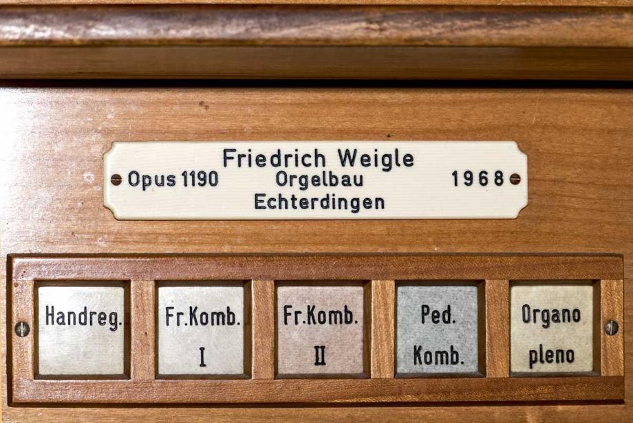 Baujahr 1988, Firma Weigle im Endstadium, von Konrad Mühleisen geplant und gebaut, kurz bevor er seine eigene Orgelbaufirma aufmachte.