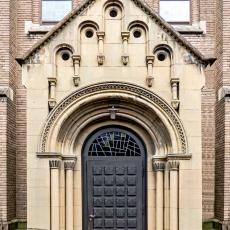 Der Stil der Außenfassade ist dem Historismus verpflichtet. Er lässt sich sowohl romanisch als auch gotisch charakterisieren. Bei Fenster- und Türöffnungen wie auch den umlaufenden Blendbogenfriesen findet als romanisches Element eine durchgehende Anwendung des Rundbogenfrieses statt.