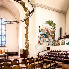 Am Sonntag, 28. Februar 2016 fand auf Initiative des Sohnes Martin Wiedmann und des Pfarrers Dieter Kümmel ein Gedenkgottesdienst statt, in welchem Pfarrer Kümmel über die Bilder Wiedmanns predigte, insbesondere das Bild der rechten Emporenseite "Das große Festmahl" deutete. Dankenswerterweise hat er seinen Predigttext "Versöhnte Welt" zur Verfügung gestellt - hier zum Download.