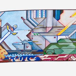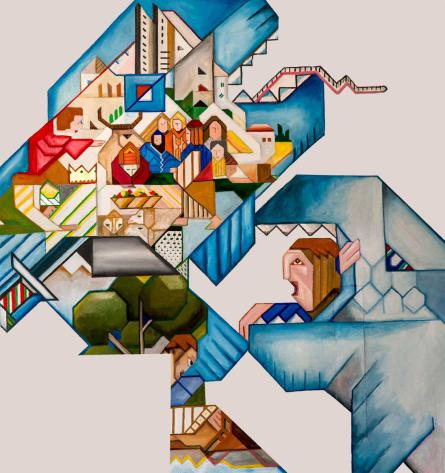 Mit Kain und Abel begann die Geschichte der Gewalt und des Terrors, die bis in die Gegenwart eine grausame Fortsetzung findet. Ganz aussen ist Jesus zu sehen: Er, der Frieden, Gerechtigkeit und Barmherzigkeit gelehrt und gelebt hat (Matthäus 5), wird aus der Welt regelrecht herausgedrängt.