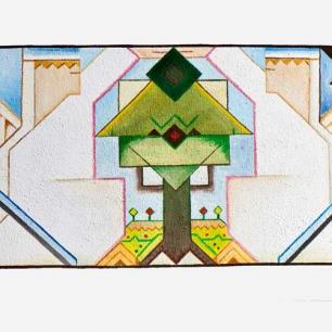 Die Welt »jenseits von Eden« wird uns auf diesem Fries vor Augen geführt. Mitten im Zentrum steht der Lebensbaum des Paradieses. Starke Engels-Mächte versperren dem Menschen die Rückkehr, er muss nun »jenseits von Eden« leben.