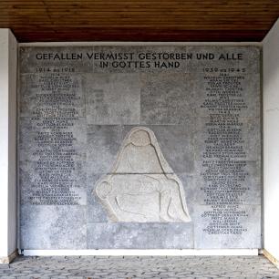 Das Ehrenmal/Gedenktafel mit den Kriegsgefallenen wurde vom Reutlinger Bildhauer Richard Raach gefertigt