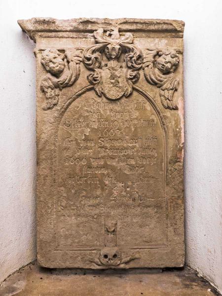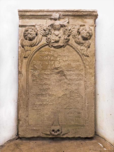 In den beiden Nischen (Vorhalle vor der West-Türe) stehen die denkmalgeschützten Grabplatten (Epitaphien) der Kapffsehen Gruft. Sie wurden 1985 zum Schutz vor weiterem Zerfall von der 10 Meter nordwestlich von hier gelegenen Gruft entfernt.