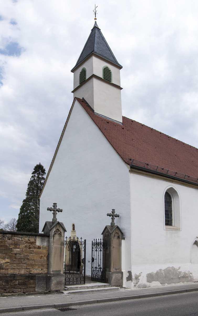 Durch die Verlegung des Friedhofs 1575 vom Pfarrhof an den damaligen Ortsrand wurde sie zur Friedhofskapelle und ragt heute aus der Natursteinmauer der südlichen Friedhofsumgrenzung.
