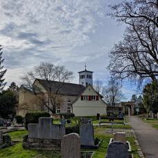 Rundgang um die Kirche (im Uhrzeigersinn) mit Sichten aus dem angrenzenden Friedhof