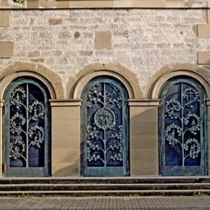 Die drei nach Westen gerichteten Türen wurden von Ulrich Henn 1973 neu gestaltet