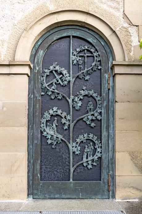 Zu den Türen, gestaltet von Ulrich Henn, erschien 2023 eine schöne Broschüre, verfasst von Christel Hoffmann, die über die Website der Kirchgemeinde zum Download angeboten wird. Ihr sind die nachfolgenden Informationen entnommen.