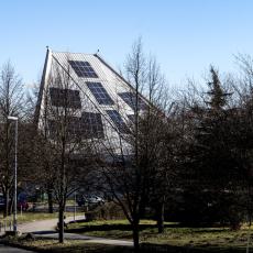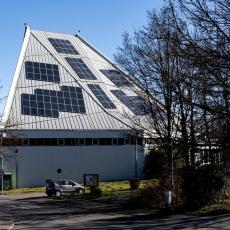 Anbringung der Solar-Paneele auf dem Kirchendach |