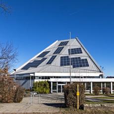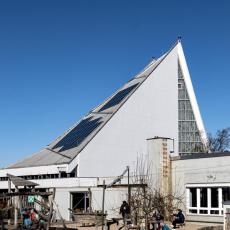 Die katholische Kirche St. Dominikus (Königsberger Straße 2) wurde nach Plänen des Architekten Fritz Vogt in Sichtbeton-Bauweise er-richtet und im Jahr 1968 eingeweiht. Die zeltartige Form des Gottes-hauses ist nicht zuletzt Ausdruck neuer theologischer Sichtweisen in den Jahren nach dem Zweiten Vatikanischen Konzil. Statt einer alther-gebrachten Hallenkirche baute man ein "Zelt Gottes unter den Menschen".